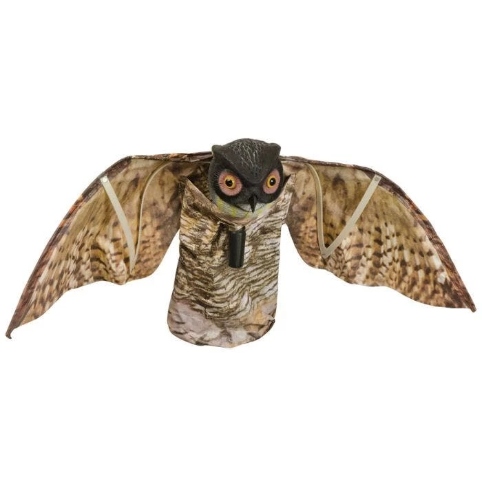 The Bird X Prowler Owl is a decoy designed to scare away nuisance birds and small animals from your property. It is designed to resemble a great horned owl, an aerial predator feared by many species of birds and small animals. Its realistic appearance and moving wings prevent acclimation by pests.
