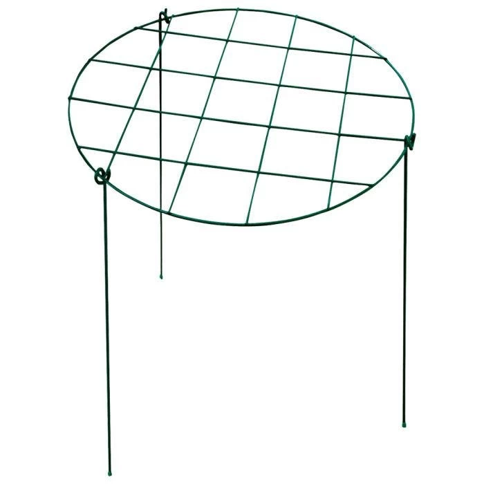 Commercial quality supports give young plants the lift they need to survive and thrive. Sturdy supports in designs to suit a variety of vegetation-crafted to last and last. Just the thing to give young plants a boost towards glorious growth provides support all season long. Place the grid when you plant, plants grow through the grid for concealed support. 5 gauge steel wire, 16″ diameter, 25″ legs. Openings are 3″ x 3″ square.