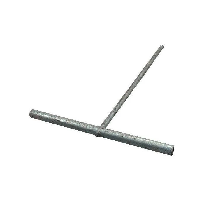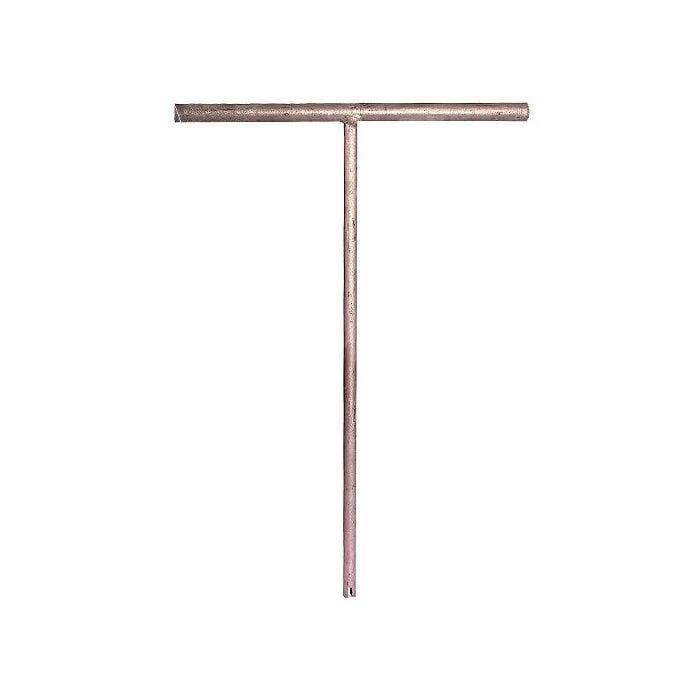 T-handle, notched shaft. Shaft is 23″ long, T-handle is 16″ long overall