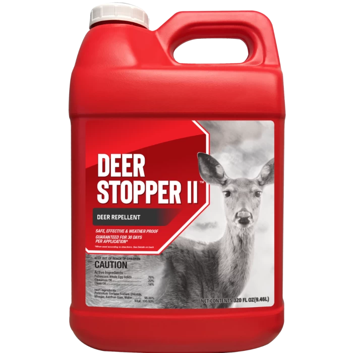 A single 2.5 gallon container of Deer Stopper II can cover approximately 4,000 sq ft.
