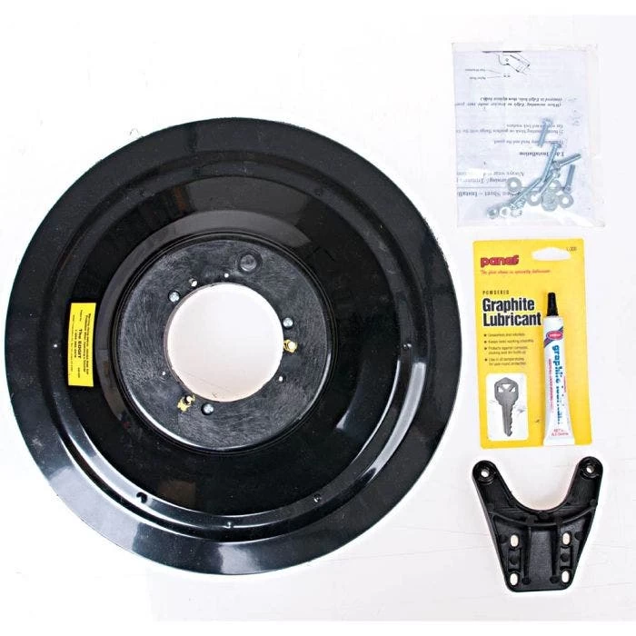 - Included Components: Mounting bracket, 14 inch revolving disc