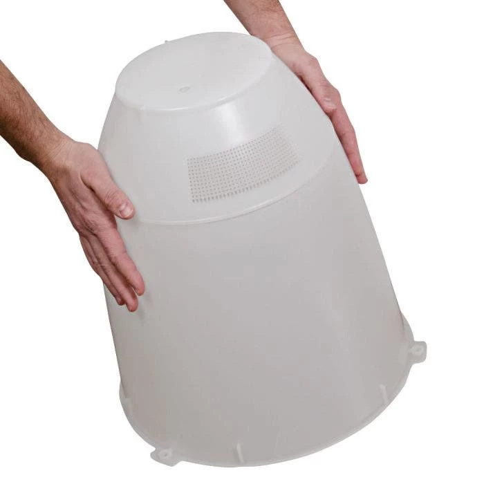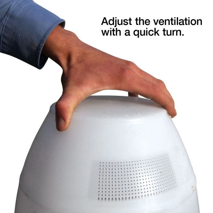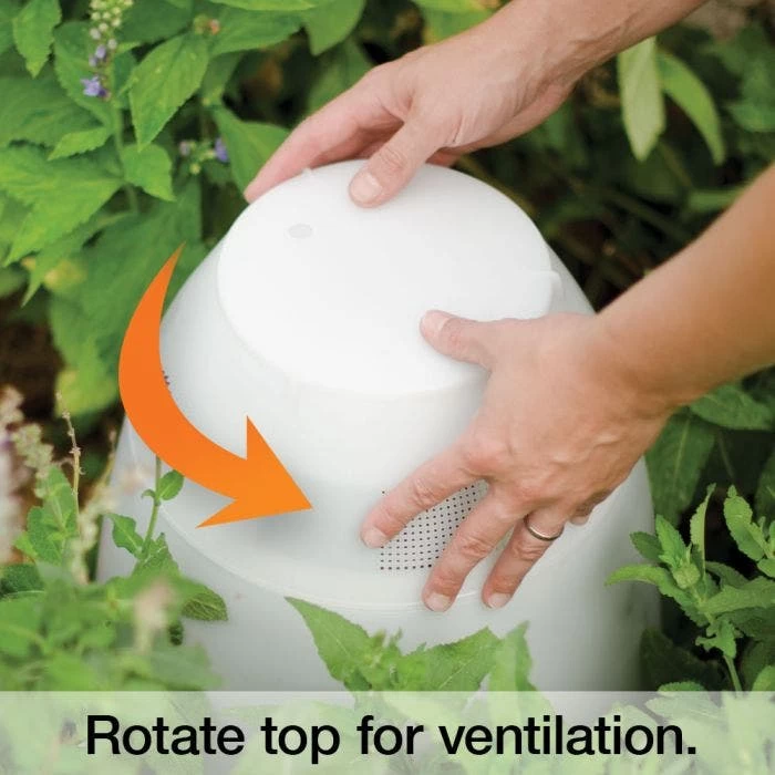 Unique adjustable vent allows ventilation on hot days and humidity control. To secure to ground simply anchor with landscape pins through the three holes in bottom rim. Stackable for easy storage and made in the U.S.A. 15-inch height, 13-inch diameter. Ship wt. 2.5 lb.