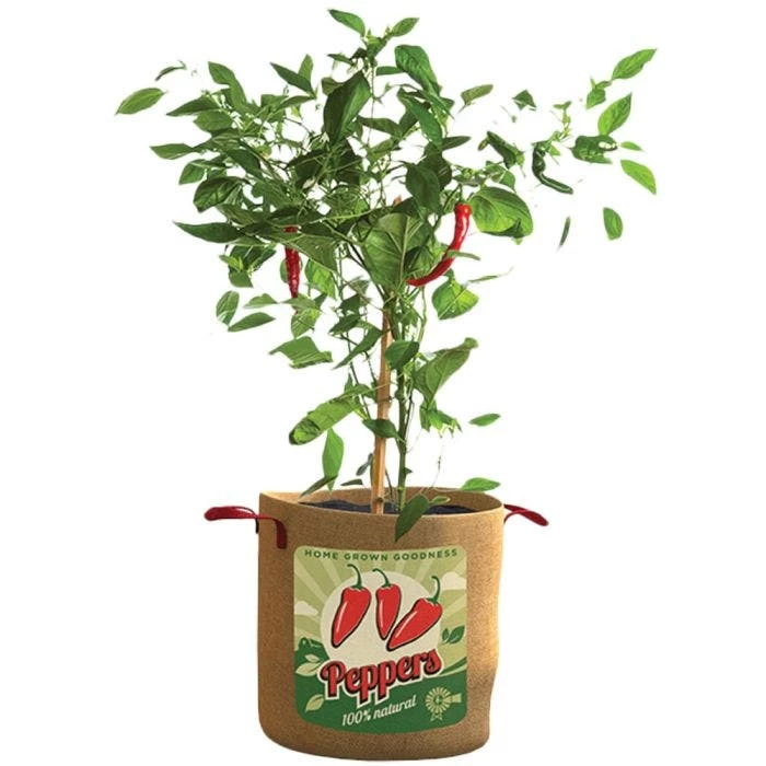 The Grow Bag 10 Gal Pepper Retro Graphic is sufficient to grow peppers or any other small vegetable plants. Its capacity is 10 gallons.