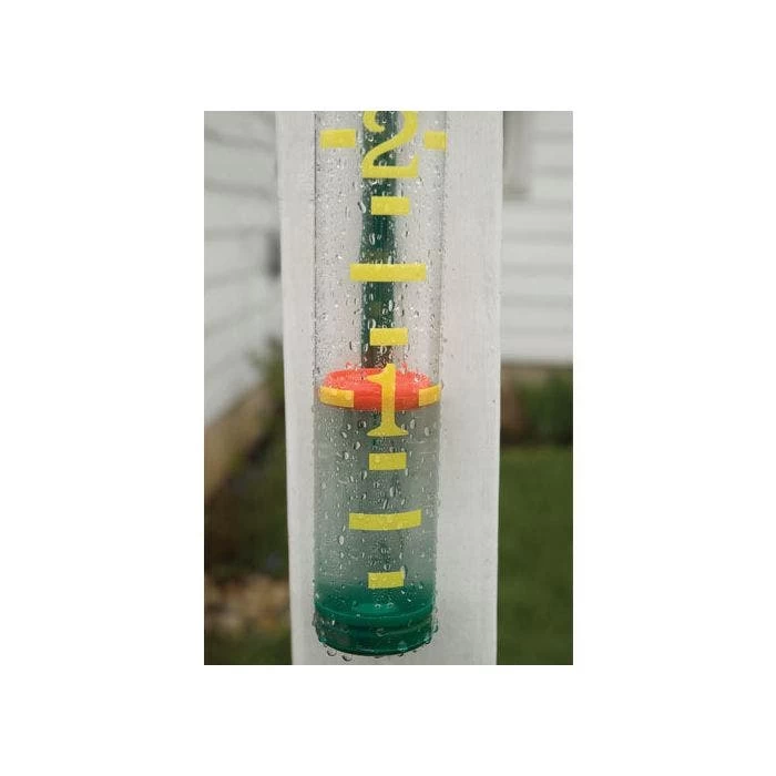 Oversized 20 inch tube measures rainfall from a slight sprinkle up to 5 inches. Unique funnel design calibrated so one inch of rain raises the float nearly 4 inches! Durable, high impact plastic