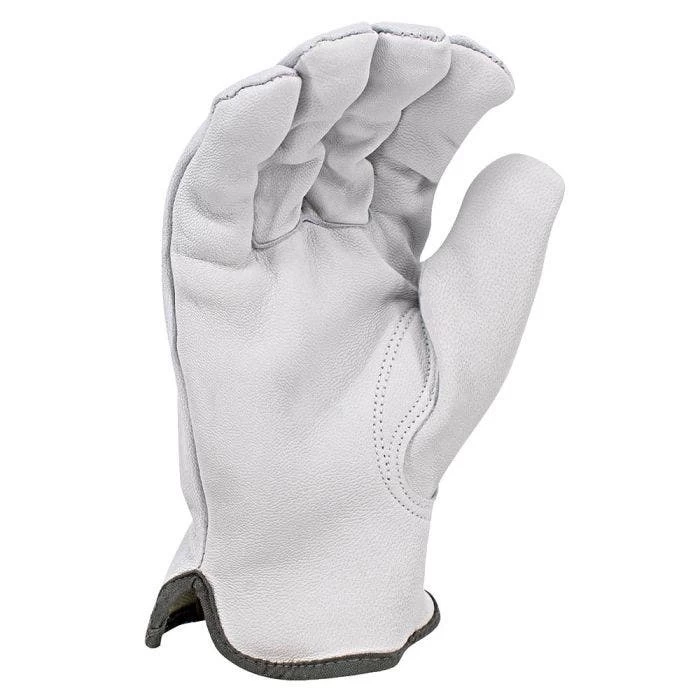 - The white grain goatskin glove with a Kevlar® lining provides excellent cut protection.