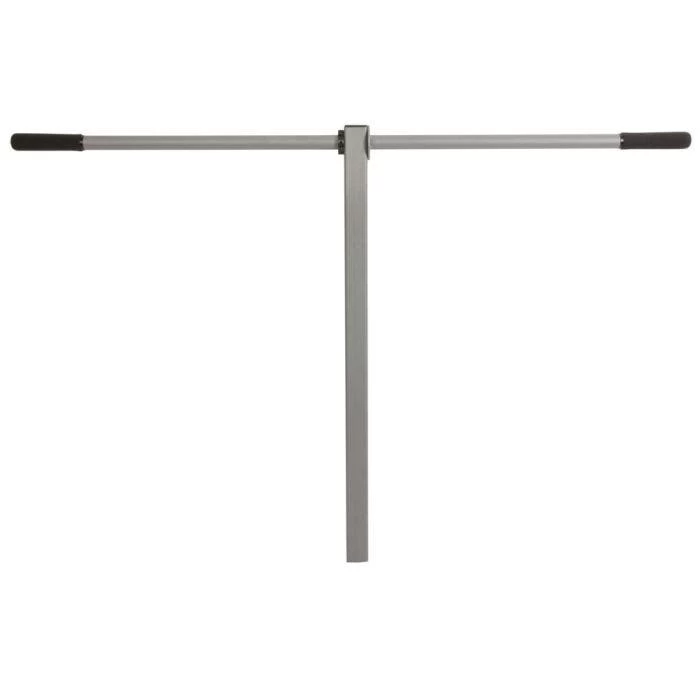 The Big T-Bar Attachment quickly slips into the receiver bracket and locks in with the 5/8in bent clevis and hairpin. This converts the cart to a wide 60in handle with plenty of room for two or three workers. The extra wide handle allows the users at each side to face front or back, gaining the best position for moving the cart.