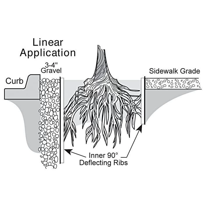 The Rigid Panel Root Barrier can be used to create a linear planting application by bordering hardscapes, or can connect to encircle the root ball for surround planting. Its anti-lift panels slide together to create various lengths of barrier, and each panel can be separated into 2 foot sections.