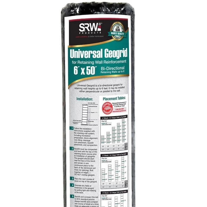 SRW Universal Geogrid can be used for retaining walls of up to 6 feet in height.