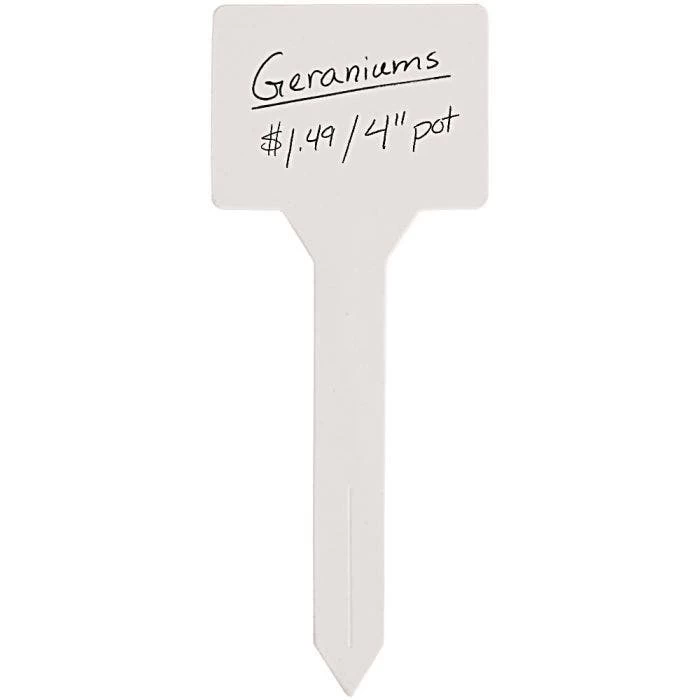 Snow white, heavy .030 styrene with a smooth finish for easy writing. Ideal for pricing, general information, and so much more. 5″ length, general use size, for smaller pots, plants, flats,and seedlings. 9 3/4″ length size for large plants and pots. 2″ x 1 1/2″ writing area. Priced and packed 100 per bundle.