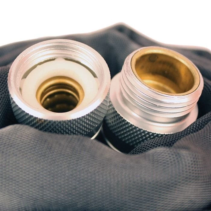 The zero-G Hose is the future of advanced hose design. 50% lighter weight than a standard hose. Tru-Flex pliable inner core prevents kinking. Small, compact and easy to store. High burst strength over 600 PSI. Same flow rate as 5/8-in conventional hose. Ergonomic, crush proof couplings. Engineered high density G-Force woven fibers offer durable, long lasting wear equal to commercial grade hoses. Glides smoothly over surfaces without marring or snagging. Drinking water safe, lead free, and Prop 65 compliant. Cold weather flexibility down to 35 degrees. Does not retract or expand, but it also won’t blow up! Made in the USA. Brand new design, limited quantities available. Disconnect this hose from brass faucets several times per year. Failure to do so results in the two ends fusing together via galvanic corrosion.